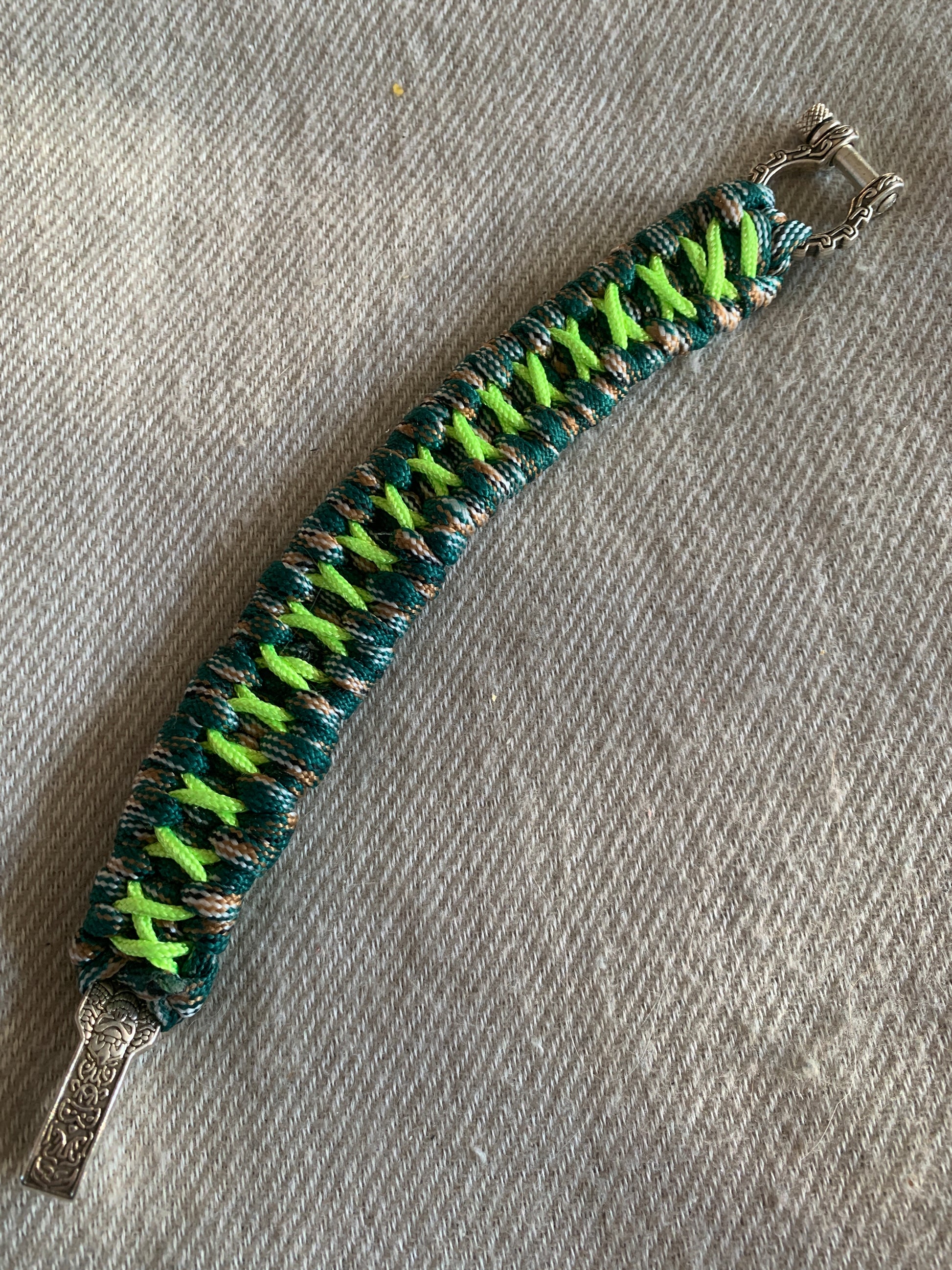 Paracord Bracelet Army and Neon Stiches 8"